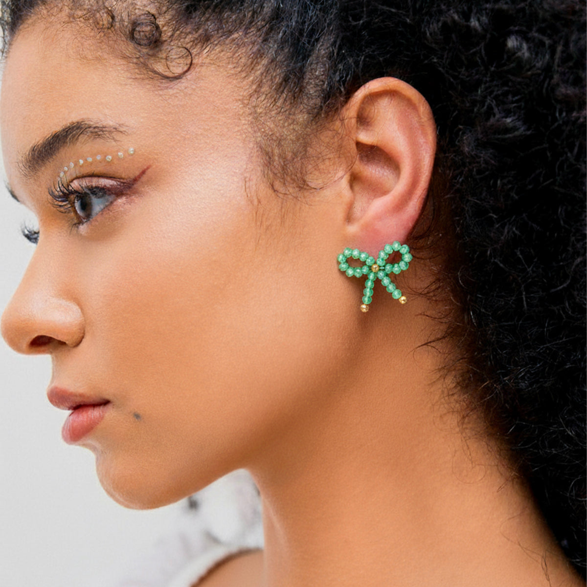 Gli Orecchini Lolly sono piccoli fiocchi realizzati con perline di cristallo brillanti, pronti a dare un tocco pop e divertente a ogni outfit. Il design a fiocchetto, arricchito da due sfere dorate, li rende irresistibili: dolci, femminili e pieni di luce!